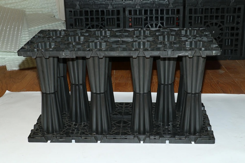 防排水保護板獨有的凹凸中空立筋結(jié)構(gòu),可以有效快速的導(dǎo)出地下防水層積水,地下滲出的水順著地下架空層排水板的空間將水引流至四周盲溝,再通過盲溝后引流至集水坑。從而大大的減少甚至消除了防水層的靜水壓,通過這種主動導(dǎo)水的原理達到主動防水的效果。有效的保護構(gòu)筑物和防水層,并且抵抗土壤中的各種酸堿和植物的根刺還有防潮降噪的功能。對土建施工周期及構(gòu)筑物的正常使用和壽命具有重要的作用。